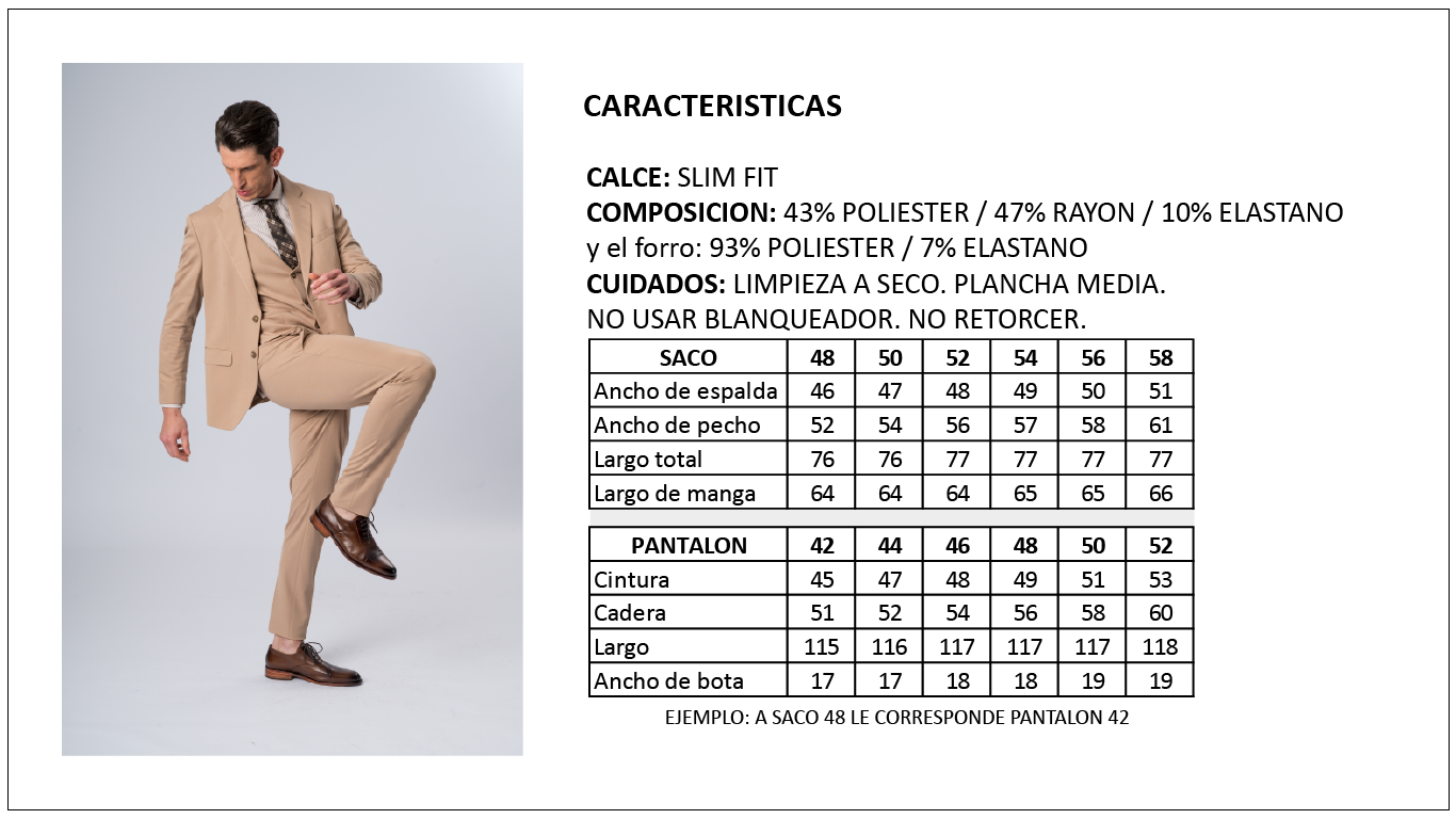 Ambo liso ULTRA-COMFORT, 2 botones. TECNOLOGÍA EN SASTRERÍA. La composición del tejido incluye un 10% de spandex. Novedad absoluta en el concepto de prendas de vestir. Vas a sentir comodidad plena. ya que es un TEJIDO DE PUNTO.