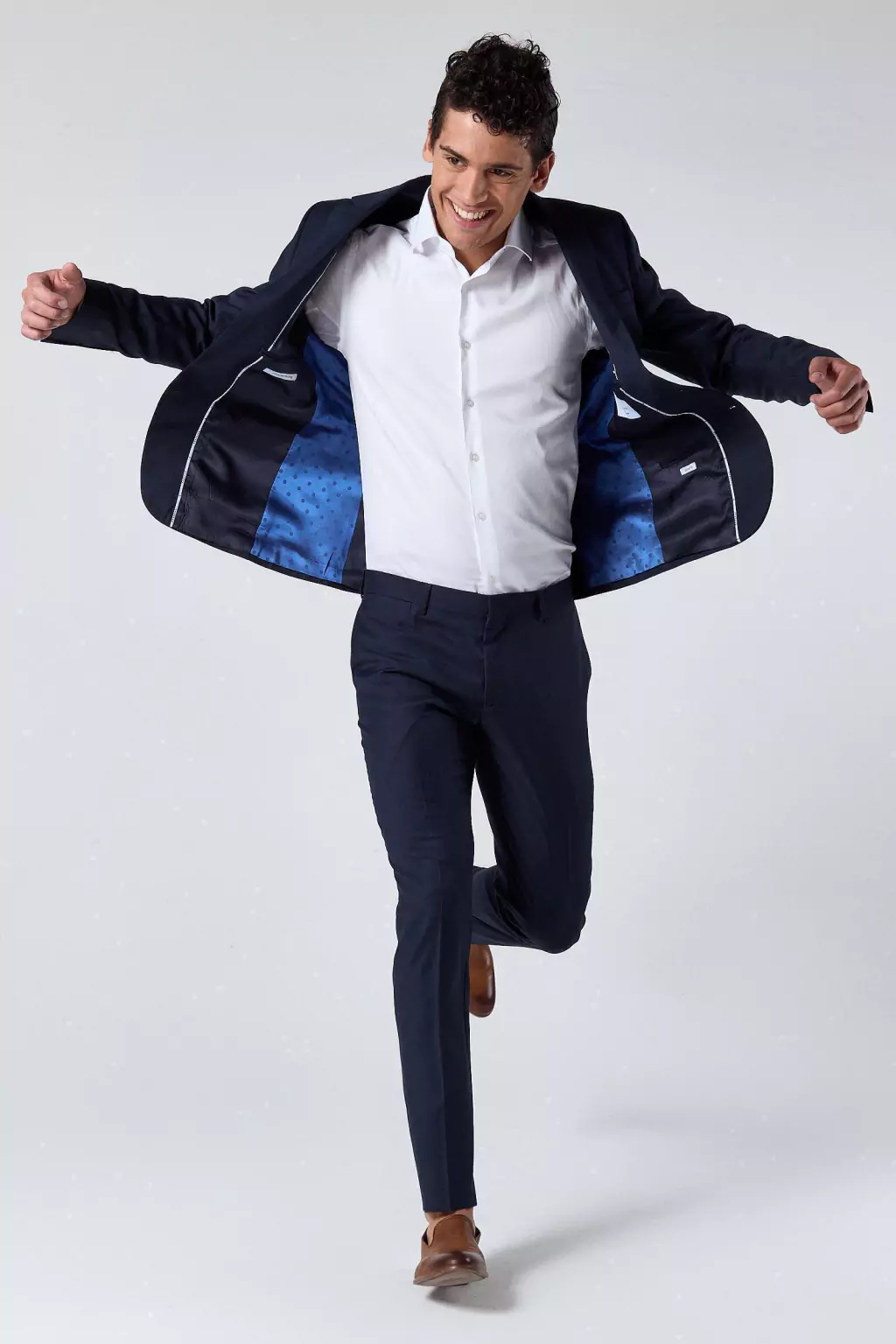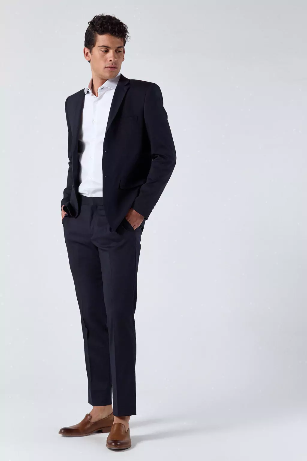 Descripción: Ambo de alpaca liso slim fit con spandex. Doble botonadura central.