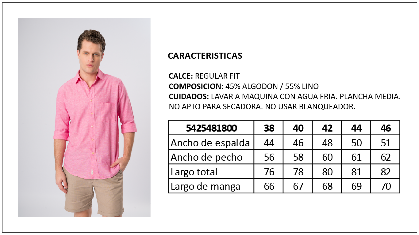 Camisa sport lino manga larga, con bolsillo plaqué. Su composición lino-algodón, te permite vestir de manera cómoda y con estilo. Ideal para los días calurosos, ya que la tela es suave, liviana y fresca. Viene en una amplia gama de colores, para que puedas combinarlas tanto con pantalones y bermudas.