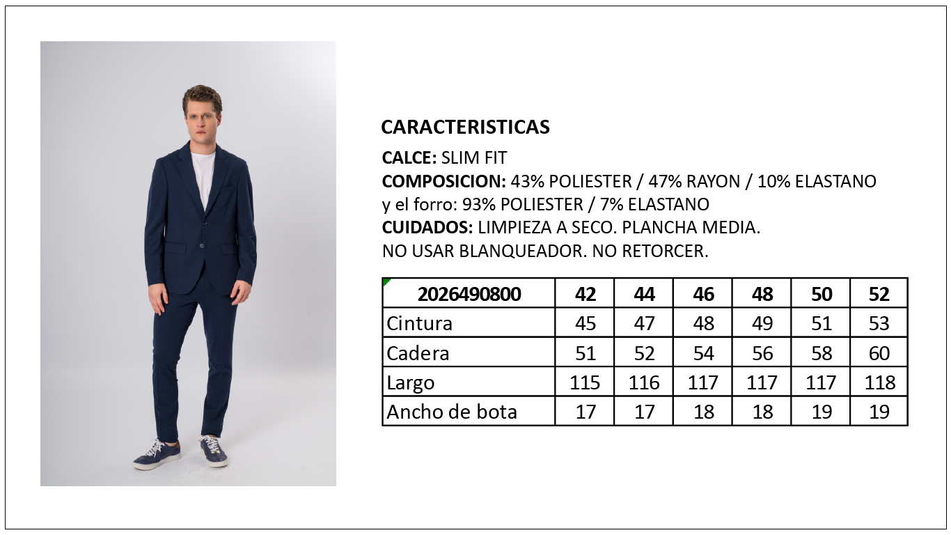 Pantalon liso ULTRA-COMFORT. TECNOLOGÍA EN SASTRERÍA. La composición del tejido incluye un 10% de spandex. Novedad absoluta en el concepto de prendas de vestir. Vas a sentir comodidad plena. ya que es un tejido de punto. Otra carcterística revolucionaria, es que el tejido NO SE ARRUGA!!!! Vas a usar una prenda de vestir, lo vas a guardar doblado en tu bolso, lo vas abrir y va a estar impecable! Proba nuestras prendas ULTRA COMFORT y vas a estar cómodo sin perder la elegancia.